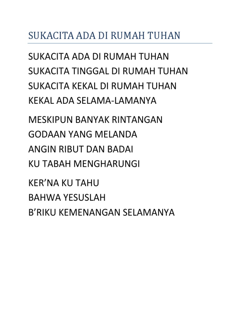 Web daftar lirik lagu pujian dan penyembahan sekolah minggu di gereja. Web Klik di sini untuk mendengarkan musik. Sukacita ada di rumah Tuhan - Mines Healing Church chosenvesselmineshealingchurch chosenvessel sundayservice.