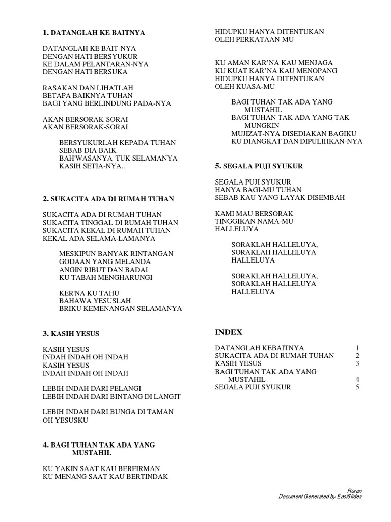 BERBAHAGIA TIAP RUMAH TANGGA DI MANA KAULAH TAMU YANG TETAP DAN MERASAKAN TIAP SUKACITA TANPA TUHANNYA TIADALAH LENGKAP DI MANA HATI GIRANG MENYAMBUT-MU DAN. Melayani-Mu Tuhan di dalam sukacita-Mu sebab hanya Tuhan yang membuat sukacitaku penuh. Jangan mengingini isterinya atau hambanya laki-laki atau hambanya perempuan atau lembunya atau keledainya atau apapun yang dimiliki sesamamu.